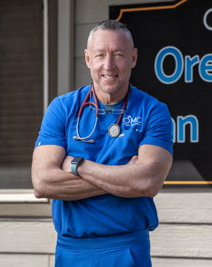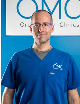 Russ Henderson has lived and practiced in Eugene, Oregon since 2014. In June of 2018, he opened the doors to OMC, which he owns and operates. Before creating a life for himself and his family in the Pacific Northwest, he was an active duty member of the United States Air Force where his focus was Urology. He also attended the University of Alabama in Huntsville’s graduate program in Family Practice, where he became a board-certified Family Nurse Practitioner where his focus has been Men’s Health, Urgent Care, Family Practice, and Urology. Russ now practices medicine focusing on healthcare geared towards the aging male, telemedicine, clinical innovations. He realized a need for more accessible and affordable patient centered care and medicine placing an emphasis on maximizing efficiency and efficacy, which is when he decided to open OMC. Russ is a passionate advocate for a holistic approach to men’s health. He practices what he preaches at home with his family, where they spend their family time enjoying the close proximity to the mountains and beaches and all that the Pacific Northwest has to offer. The community has provided him with many opportunities to volunteer his time and expertise through Oregon Disaster Medical Team and Occupy Medicine. Russ is an active member of several professional organizations notably The American Society for Men’s Health, AANC, and AANP. Through OMC, he is accomplishing his goal of helping men live their best lives by providing accessible and affordable resources to healthcare.
