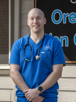 Tyler Rice is a Family Nurse Practitioner who relocated from Iowa to Bend, Oregon in December of 2021 to join the OMC team. Before moving to Bend, Oregon, Tyler worked at Iowa Methodist Medical Center — one of the busiest emergency departments in the state of Iowa — over the previous three years. While working in the hospital setting, Tyler attended graduate school at Allen College in Waterloo, Iowa to obtain his Family Nurse Practitioner degree. His focus was on primary care, family-centered care, men's health, and urgent care. Tyler has a passion for assessing, planning, diagnosing and treating patients. Tyler wants to be a patient advocate and strives to treat each patient as an individual. His work experience ranges from non-urgent patient situations to the most critically ill patients. He wants to bring more attention to Primary Care and Men's Health, focusing on maximizing their health for the future. Tyler and his wife moved out to Oregon to be closer to his wife's family while his mother-in-law was battling ovarian cancer. Tyler and his wife have three dogs (Sam, Lincoln and Ellie) and a pet freshwater stingray (Bear). The family enjoys the outdoors, skiing, hiking, and traveling. Tyler hopes to provide many opportunities serving for this community. He wants to help men live their lives to the fullest and provide valuable resources for each one's healthcare.